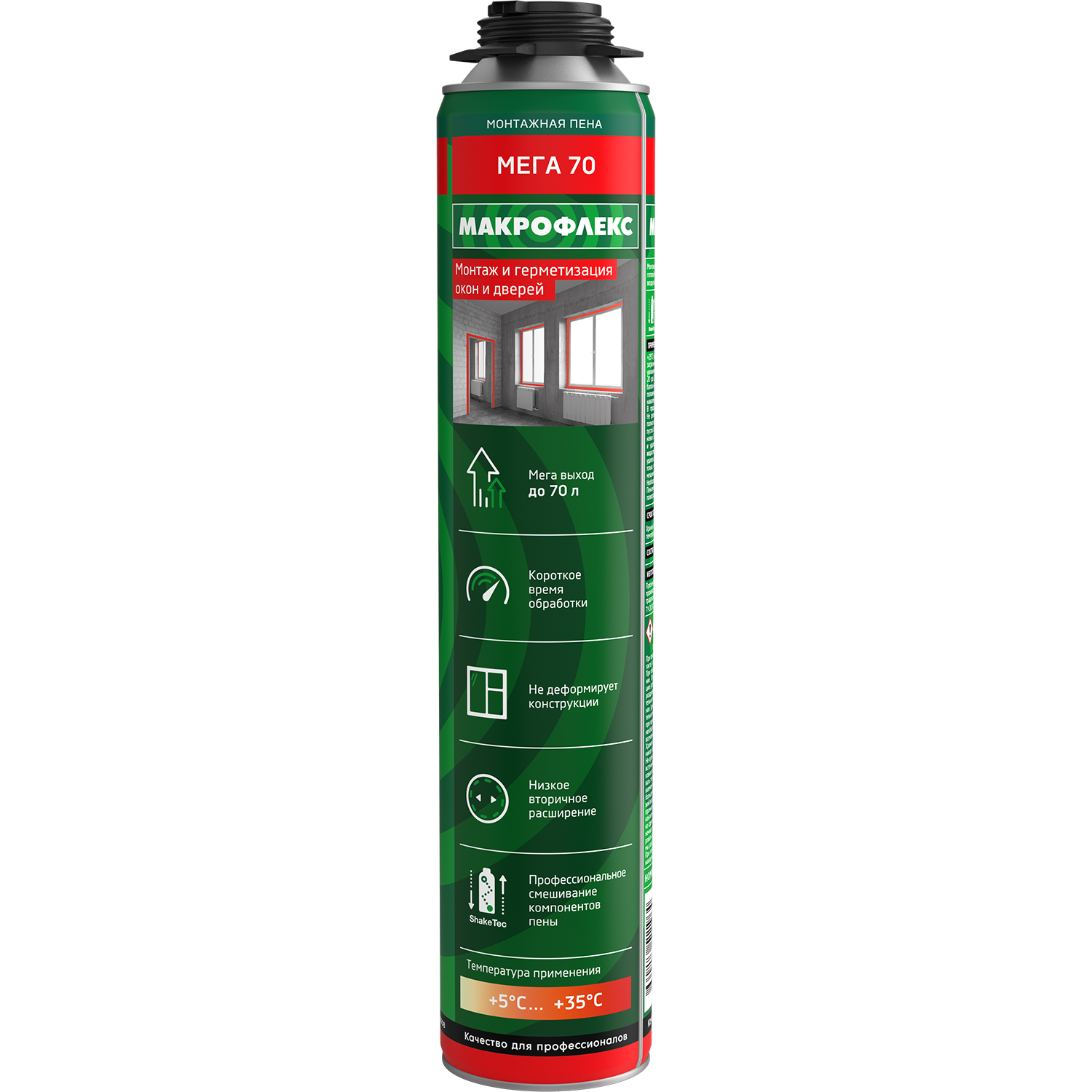 Оригинальная монтажная пена ПРО Макрофлекс Мега 70 - высококачественная однокомпонентная монтажная пена для монтажа и изоляции дверей и окон. Контроль и точность нанесения. Высокая тепло- и звукоизоляция. Высокая адгезия к большинству строительных материалов. Мелкопористая структура. Не деформирует конструкции. Температура применения от +5°C до +30°C. Выход готовой пены до 70л.