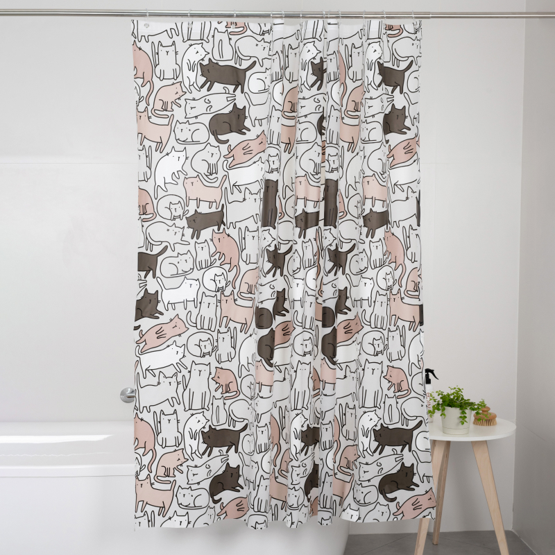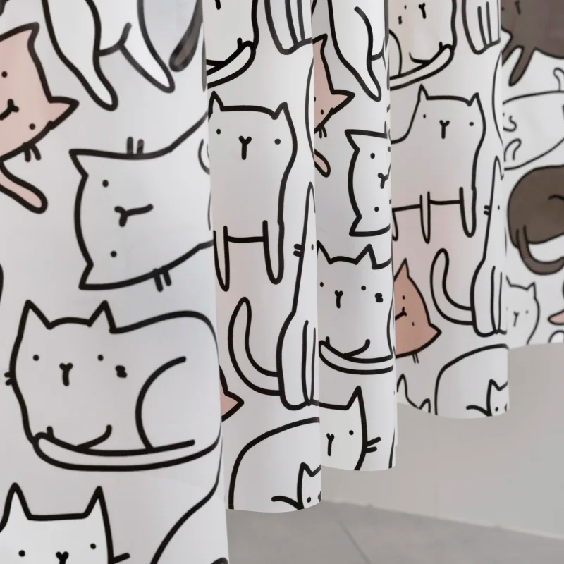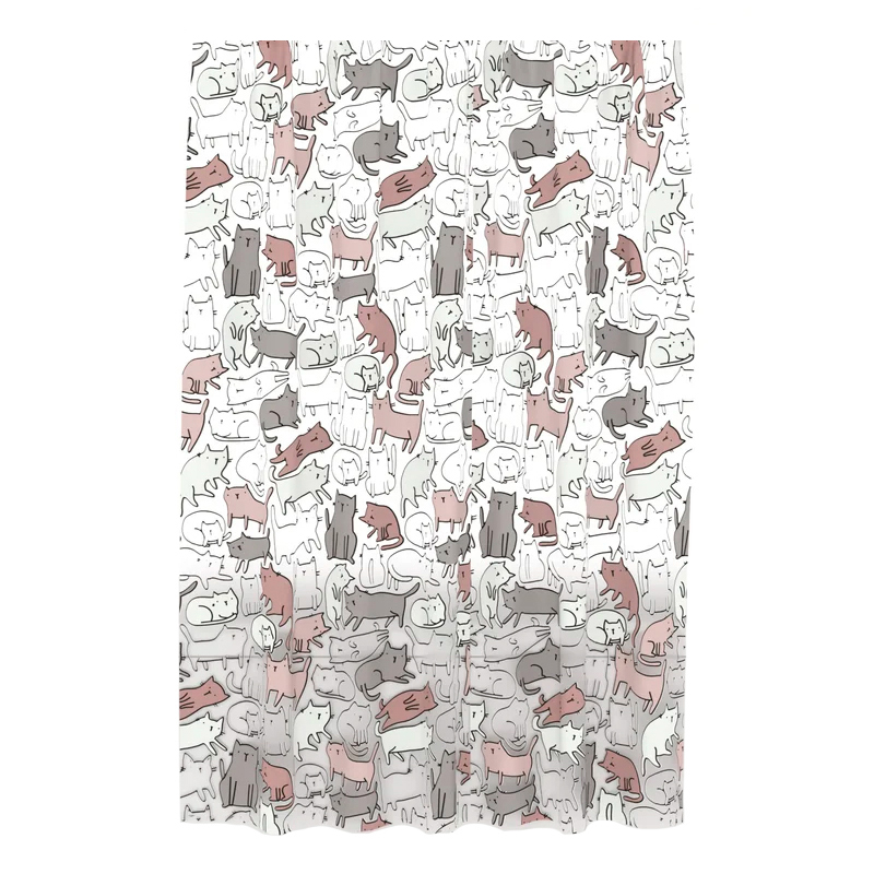 Настоящей изюминкой шторки «Cats» является её очаровательный дизайн с разноцветными котами. Это привлекательное изображение добавит игривости и уюта в вашу ванную комнату, создавая атмосферу веселья и радости. Универсальный размер и прочные 12 люверсов из нержавеющей стали делают эту шторку идеальным выбором для любого типа ванной комнаты.