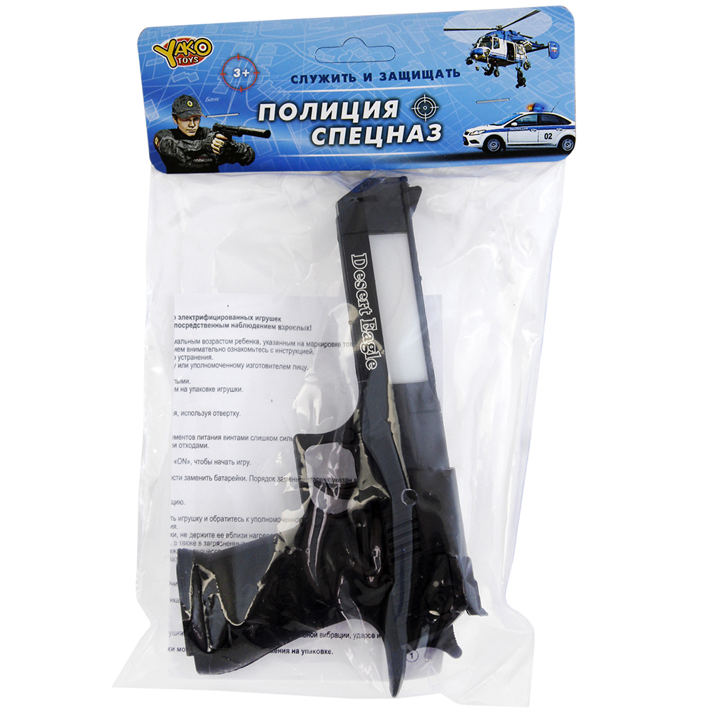 Удобный и функциональный пистолет для юных бойцов! Эта игрушка подарит вашему ребенку множество захватывающих моментов в активных играх. При нажатии на курок пистолет оживает: он издает реалистичные звуки выстрелов и ярко светится, что делает игру еще более динамичной и увлекательной. Для работы игрушки требуются 2 батарейки типа АА (в комплект не входят). Идеальный подарок для любителей приключений и подвижных игр!