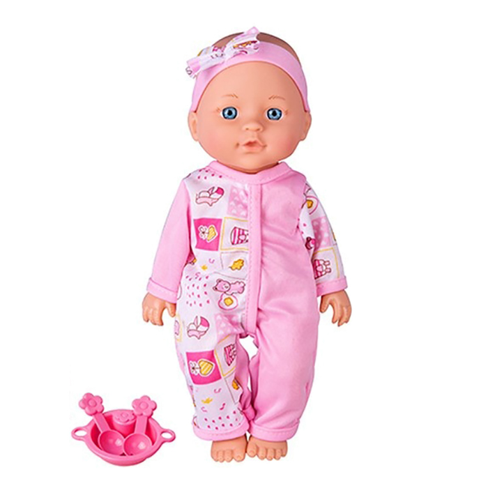 Яркий дизайн игрушки привлечёт внимание ребёнка, подарит радость и позволит погрузиться в увлекательную игру, наполненную теплотой и нежностью. В наборе: пупс, ложка, вилка, миска.