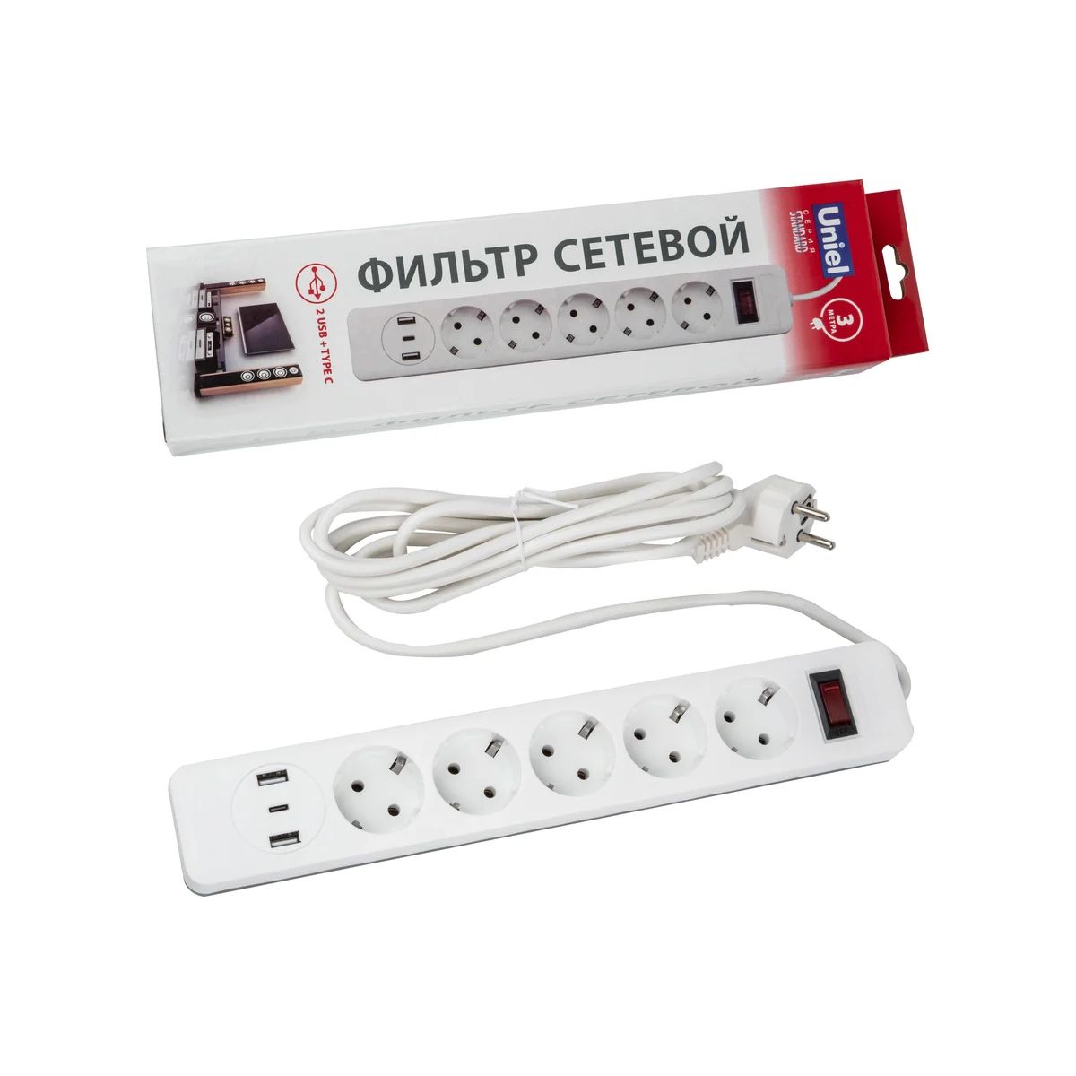 Фильтр сетевой UNIEL Standard 5 гнезд 3 метра белый