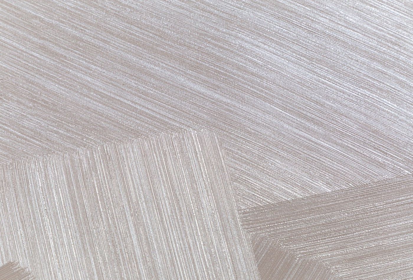 Текстура выглядит так, словно поверхность пронизана тысячей тончайших нитей. При свете они раскрываются мягким мерцанием, словно струятся по стене и создают ощущение движения. Благодаря технологии прокрашенных в массе стыки остаются незаметными, а полотна стыкуются легко. Рисунок продуман так, что клеить его можно без подбора и в любом направлении.