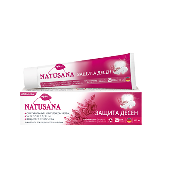 Зубная паста NATUSANA GUM PROTECTION ЗАЩИТА ДЕСЕН содержит растительные и минеральные компоненты для безупречной гигиены полости рта. Комплекс натуральных экстрактов ромашки и шалфея ухаживает за деснами и снижает образование бактериального налета в полости рта. Эфирное масло эвкалипта, фенхеля, мяты, тимол и ментол придают пасте приятный травяной вкус и освежают дыхание. Фторид натрия и гидроксиапатит укрепляют эмаль и защищают от кариеса. Мягкий абразив полирует эмаль, сохраняя ее гладкость/