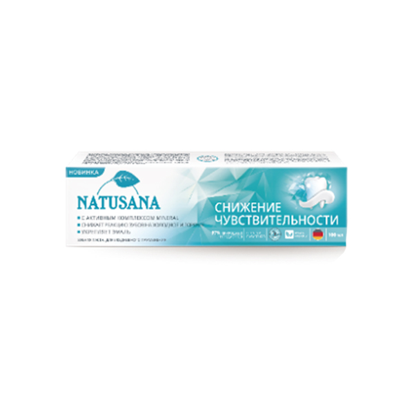 Зубная паста NATUSANA SENSITIVE СНИЖЕНИЕ ЧУВСТВИТЕЛЬНОСТИ разработана специально для людей с чувствительностью зубов к внешним раздражителям. Минеральный комплекс с ионами калия снижает неприятные ощущения от холодного/горячего/кислого/соленого. Фторид натрия и гидроксиапатит укрепляют эмаль, защищают ее от кариеса и снижают образование бактериального зубного налета. Мягкий абразив полирует эмаль, ментол, тимол и масло мяты освежают дыхание.