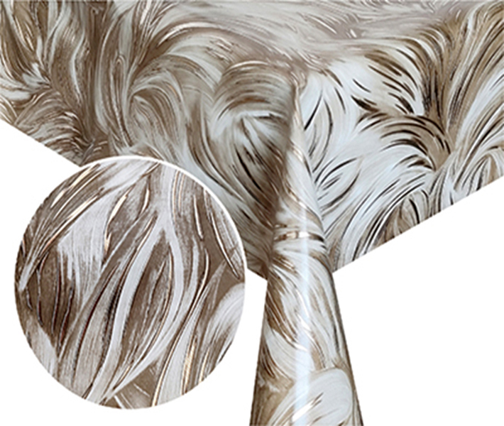 Клеенка PRIMA DIVA на тканой основе состоит из двух слоев: верхний слой – ПВХ, на котором нанесен рисунок, нижний слой – тканая основа из полиэстера. Дизайн – однотонный фон или фон с имитацией «мрамора» с печатным металлизированным или голографическим узором. Поверхность клеенки гладкая полуглянцевая с металлизированными элементами.