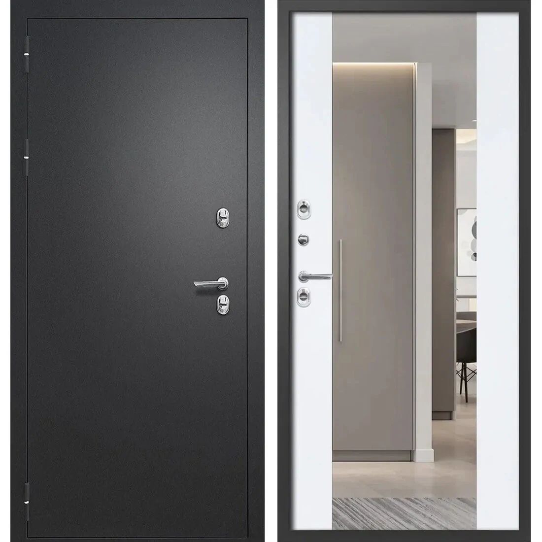 Дверь стальная FLYDOORS Айварс Термо L 2050х960мм букле чёрный/зеркало, Velluto Bianco