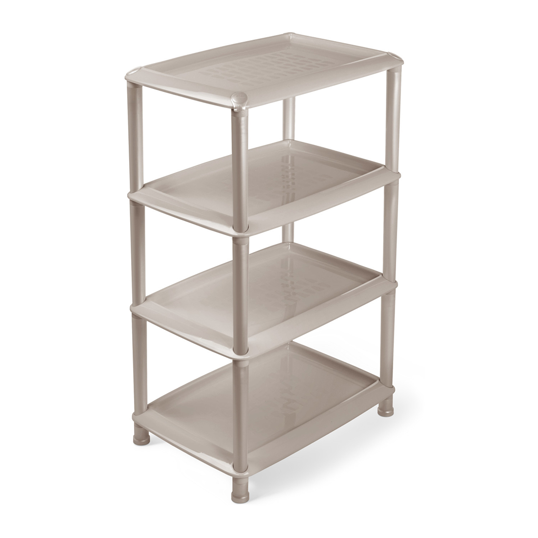 Этажерка позволит организовать пространство в небольшом помещении, например в прихожей или ванной. Пластик хорошо переносит влажность. Ухаживать за ним также легко - очистить поверхность полок можно при помощи обычных моющих средств без применения абразивных материалов. Нескользящая поверхность и бортики по краям полок обеспечат устойчивость размещенных предметов. Рекомендуемая общая нагрузка на этажерку до 8 кг. Размер этажерки в собранном виде составляет 440x310x770 мм.