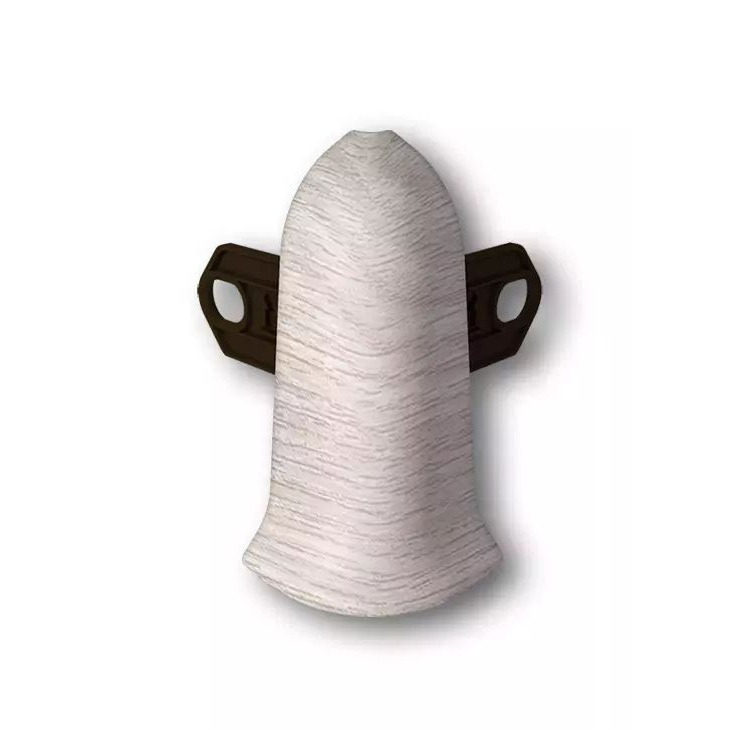 Внешний угол представляет собой элемент декорирования стыков пластикового плинтуса. Он крепится на предварительно установленный держатель, обеспечивающий прочность соединения. Отличительной чертой уголка является простота его использования, которая исключает необходимость производить замеры и резать плинтус. Чтобы сэкономить время и силы в финальной стадии ремонта, достаточно просто купить и установить уголок для плинтуса.