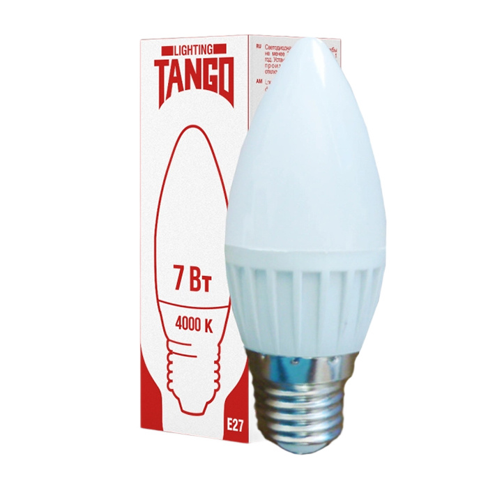 Лампа светодиодная декоративная, выполненная в форме «свеча» TANGO LED C37-7W-E27-W, предназначена для использования в закрытых и открытых светильниках. Области применения: весь спектр декоративного бытового освещения – гостиные, столовые, детские; места общественного пользования - гостиницы, рестораны, конференцзалы, фойе, магазины.