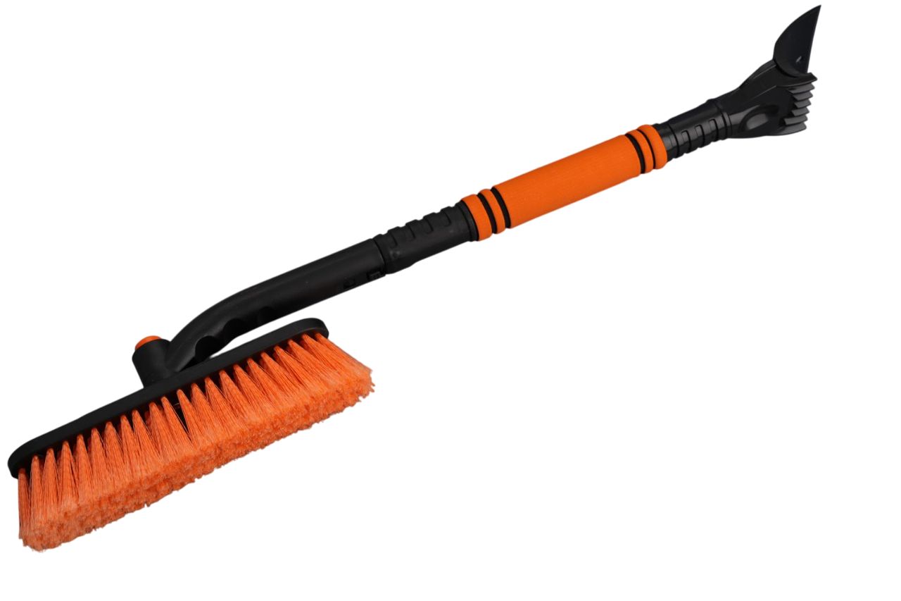 Конструкция ручки регулируется по длине, что делает использование инструмента комфортным и быстрым. Щетка поворачивается и снимается. Скребок также съёмный.