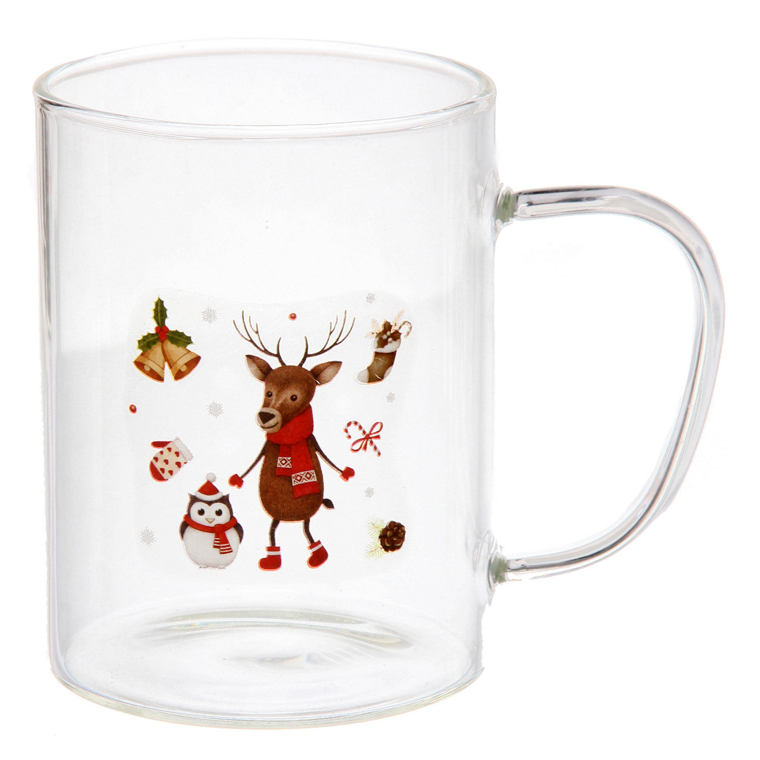 Яркая стеклянная кружка объемом 450 мл, выполненная из прозрачного стекла, украшена веселыми зимними мотивами: яркими снежинками, сияющими гирляндами и волшебными звездочками. Отличный подарок для всех любителей праздничного настроения и традиционного чая зимой!