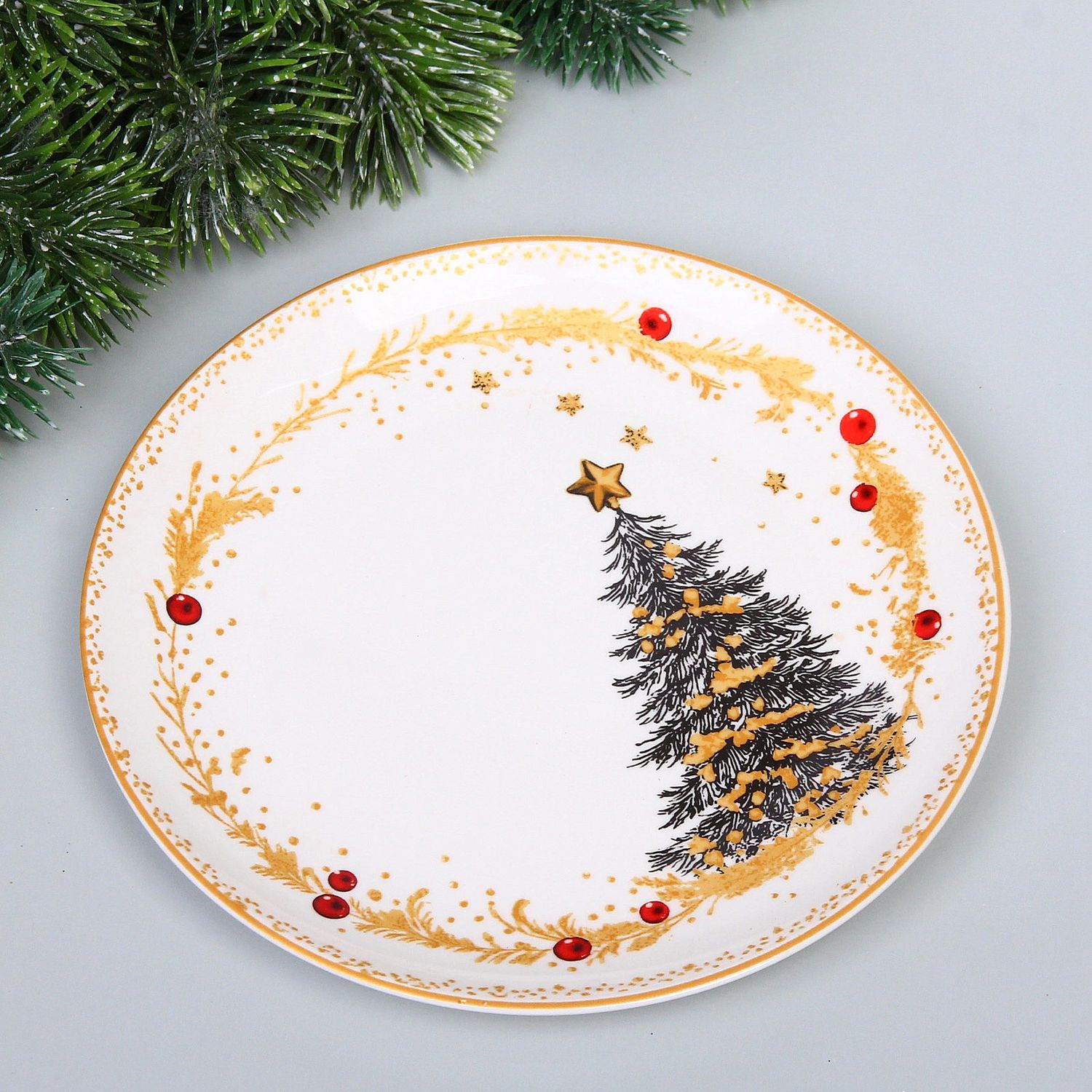 Рисунок с изображением нарядной ёлки напоминает о волшебстве и ожидании чуда, характерных для самого любимого праздника в году. Такая посуда способствует созданию тёплой семейной обстановки и прекрасно подойдёт как для сервировки праздничного ужина, так и для простого чаепития в кругу родных и близких.