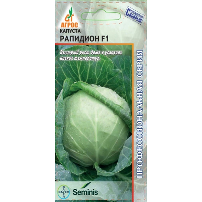 Капуста Рапидион F1 - суперранний гибрид. Растение компактное, с вертикальным расположением листьев. Кочан однородный, округлой формы, привлекательной светло-зеленой окраской, массой 0,8-1,5 кг. Особенность гибрида: быстрый рост даже в условиях низких температур, кочан плотный с хорошей устойчивостью к растрескиванию. Особенности выращивания: при высадке растения заглубляют до 1-го настоящего листа.