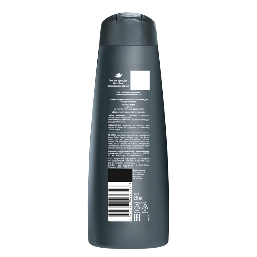 Мужской гель для душа имеет приятный аромат зелени, мускуса и ментола, который подарит вам ощущение чистоты и свежести. Гель для душа увлажняющий Освежающий ментол бережно очищает кожу, обеспечивая ей оптимальный уход. Гель удаляет загрязнения и излишки кожного сала, при этом не пересушивая кожу. Средство подходит для всех типов кожи. Формула геля деликатно заботится о коже, оставляя ее мягкой и увлажненной.