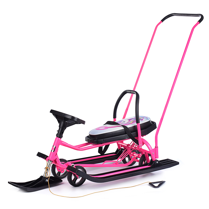 Снегокат со складной спинкой, ручкой-толкателем и колесной базой. Вашему малышу будет очень удобно в долгой поездке опираться на спинку.