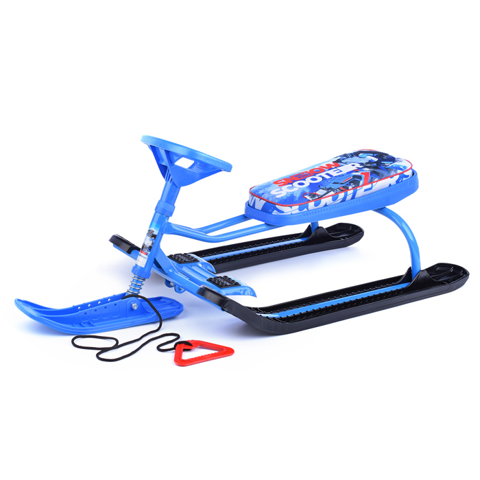 Снегокат является средством для катания детей в возрасте от 3 лет до 14 лет по заснеженным склонам при температурах воздуха от +1 до –20 C. Сварная рама из прочнейшей стали сохранила свою легкость. Боковые и передние лыжи устойчивы к низким температурам, мягко скользят по льду, снегу и даже асфальту. Амортизация сглаживает удары и неровности поверхности, по которой перемещается снегокат. Руль имеет прямоугольную форму.