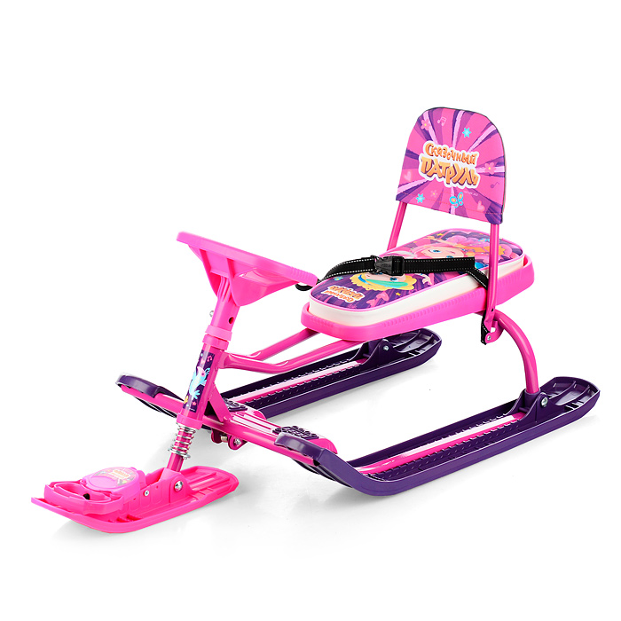 Снегокат является средством для катания детей в возрасте от 3 лет до 14 лет по заснеженным склонам при температурах воздуха от +1 до –20 C. Сварная рама из прочнейшей стали сохранила свою легкость. Боковые и передние лыжи устойчивы к низким температурам, мягко скользят по льду, снегу и даже асфальту. Амортизация сглаживает удары и неровности поверхности, по которой перемещается снегокат. Руль имеет прямоугольную форму.