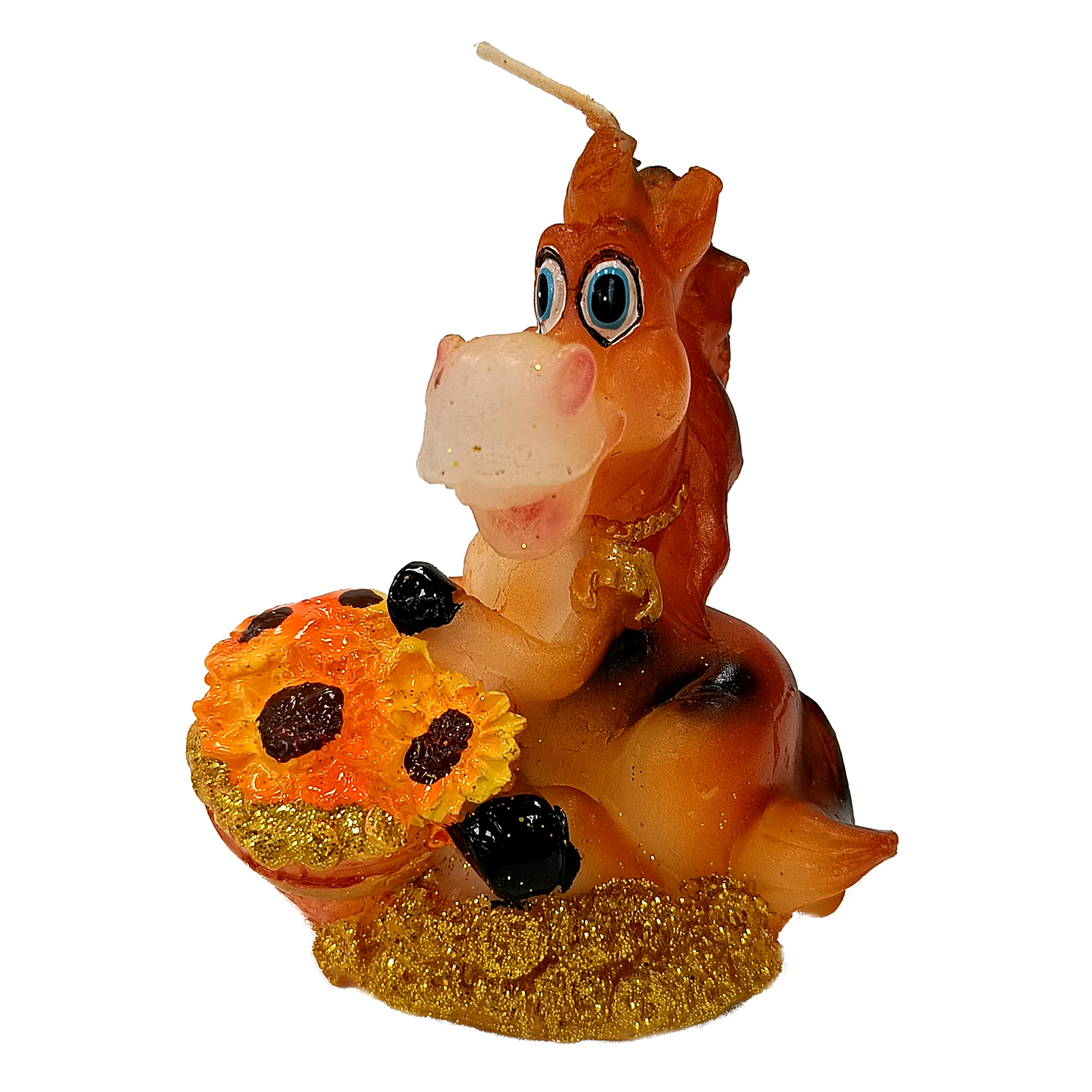 Свеча ПАПИРУС Лошадь с цветами 9х8см