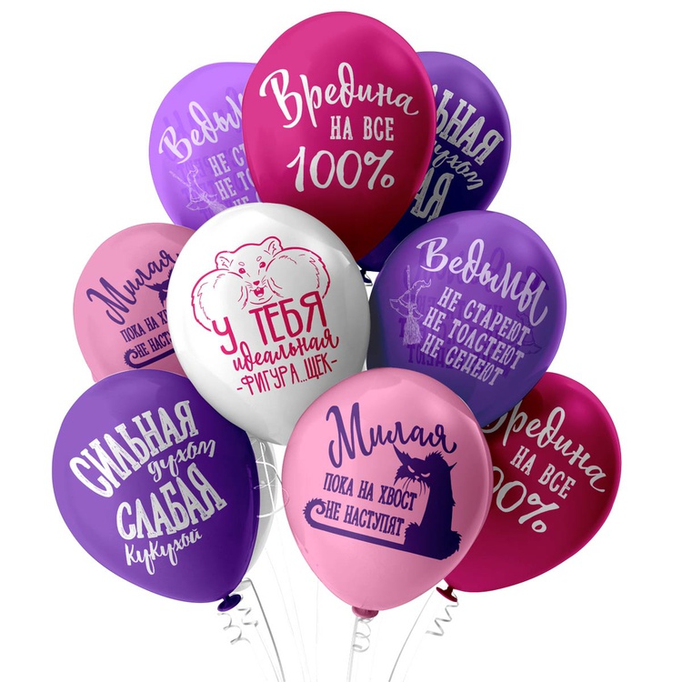 Ищете крутой и небанальный сюрприз на праздник девушке, подруге или коллеге? Воздушные шары с забавными надписями — это гарантия отличного настроения для виновницы торжества и её гостей! Они станут ярким украшением зала и основой для стильной фотозоны. Веселые и яркие шары с приколами создадут праздничное настроение на весь день!