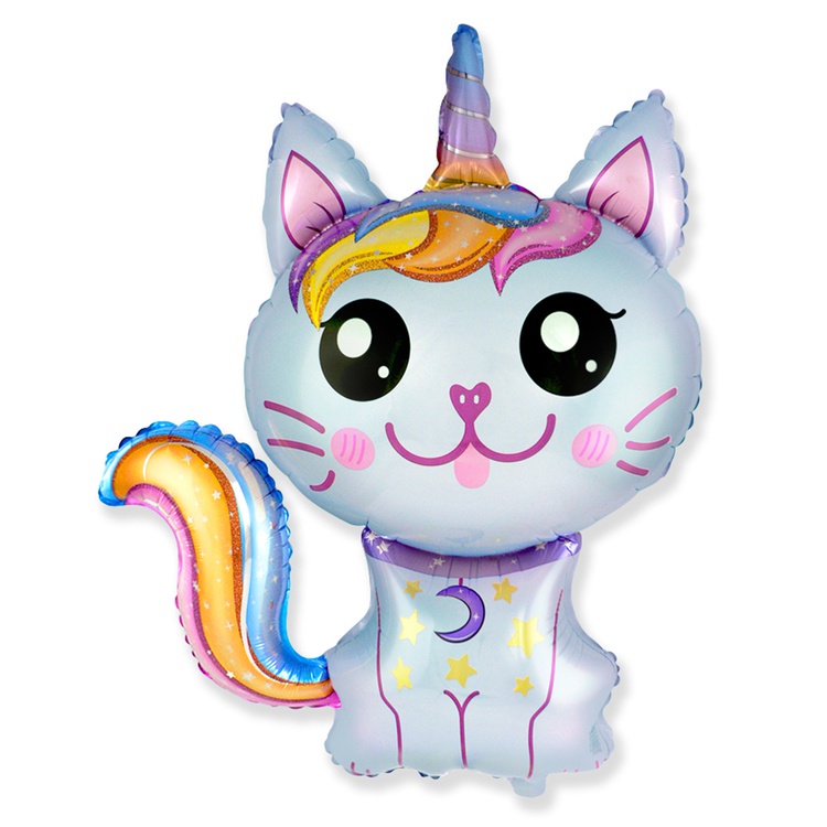 Шар надувной FLEXMETAL Кот-Единорог голубой