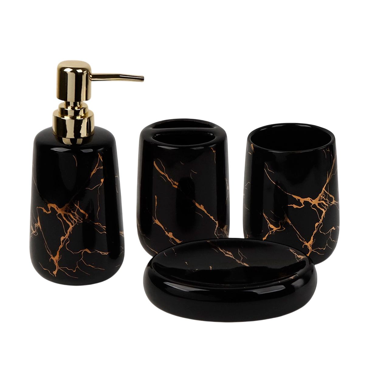 Набор «Молния», выполненный в глубоком чёрном цвете с роскошным мраморным узором внесёт нотку элегантности и стиля в пространство ванной, подчеркивая индивидуальный вкус ее хозяев.
