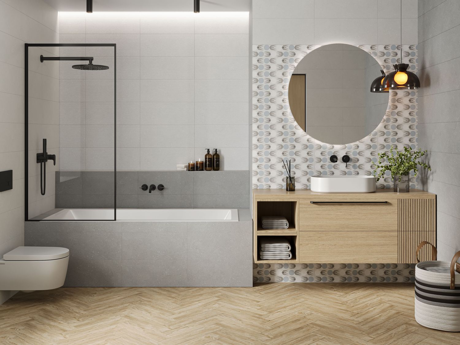 Коллекция Martin — это функциональность и характер, воплощённые в настенной плитке формата 25×60 см с матовой поверхностью. В её основе — актуальный на сегодняшний день бетон с вкраплениями: ровная, спокойная фактура с включениями мелкого камня, добавляющего глубины и натуральности. Это направление всё активнее используется в современных интерьерах — от минималистичных до индустриальных.