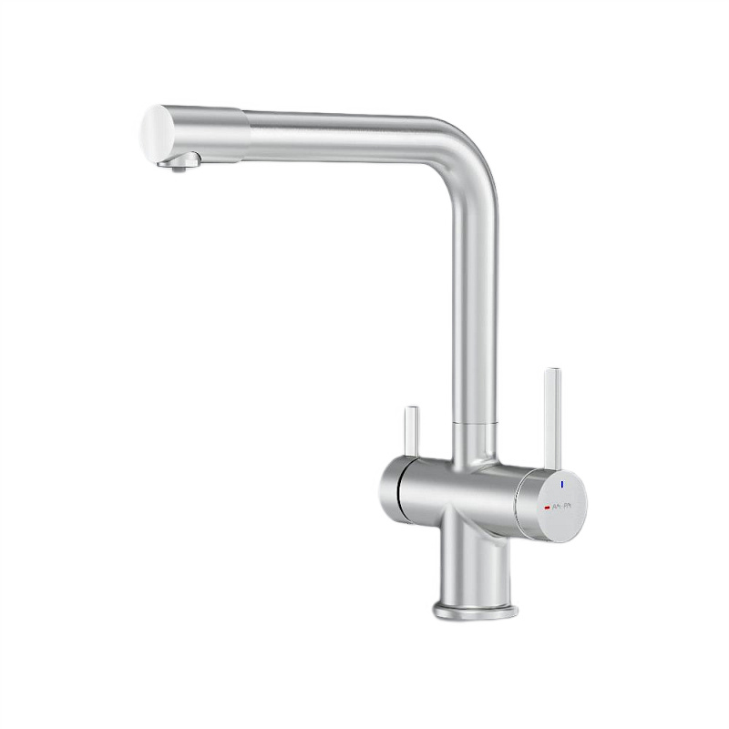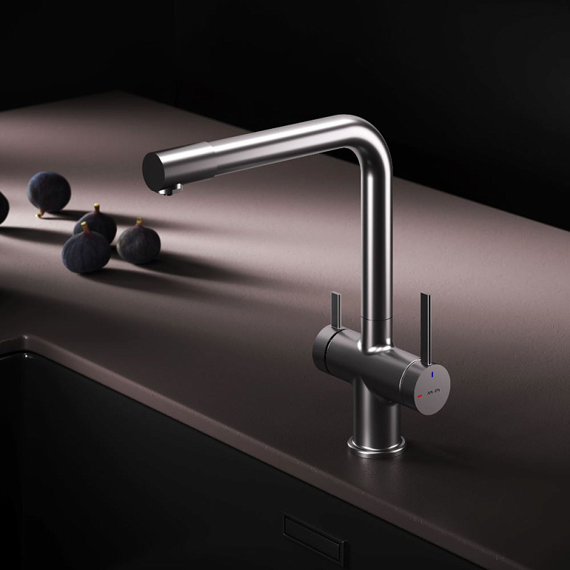 Встречайте долгожданное пополнение нашумевшей коллекции Func — кухонные смесители с оригинальными «фишками», характерными для всей коллекции. Смеситель оснащён встроенным каналом для подачи питьевой воды. Чтобы получить питьевую воду, воспользуйтесь ручкой, расположенной с левой стороны корпуса. Для обычной воды управляйте смесителем привычным образом.