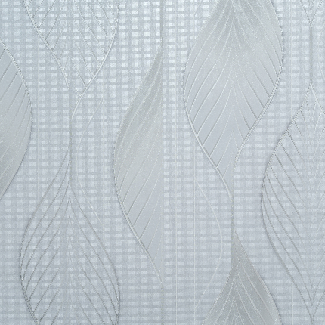 Пространство обоев наполнено воздухом: прозрачные орнаменты переплетены в тройных вертикалях, 3D акценты мягко выстроены через тени и градиентные растяжки, что добавляет глубину без перегруженности.