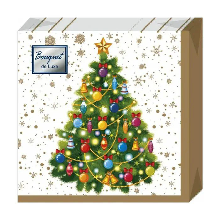 Салфетки BOUQUET De LUXE Новогодняя ель на белом