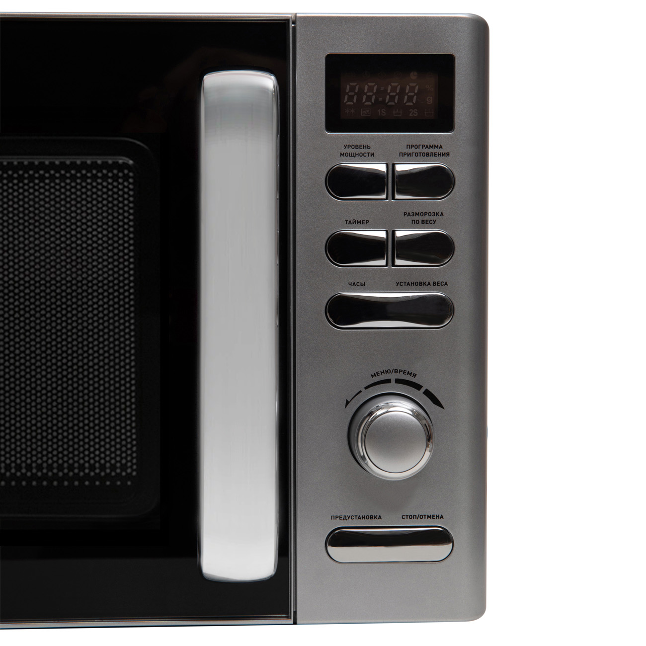 Электронное управление позволяет точно настроить время работы, а яркий и чёткий дисплей — отслеживать его. Функция разморозки будет полезна, если нужно быстро довести продукт до пригодного для приготовления состояния. Строгие черты идеально впишутся в современный дизайн, будь то кухня или рабочий кабинет.