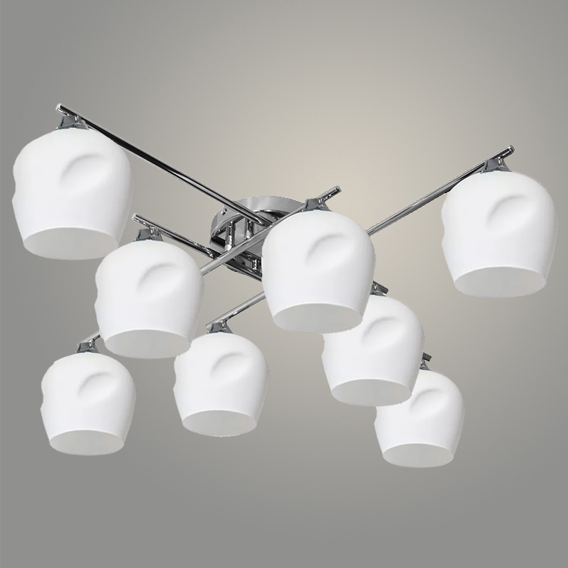 Люстра в стиле модерн станет достойным украшением вашего интерьера. Основой осветительного прибора служит крепкое основание из металла, гарантирующее надежность и долговечность конструкции. Стеклянные плафоны рассеивают приятный мягкий свет, создавая атмосферу спокойствия и уюта.