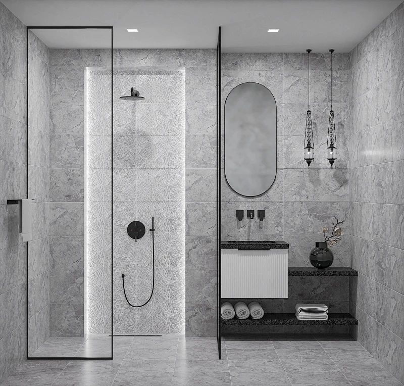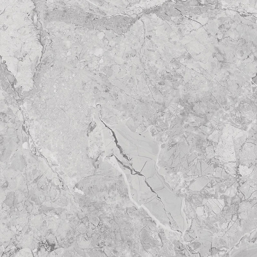 Белизна светлой плиты с легкими вкраплениям и серебристых жил и камней. Крупные "дымчатые" прожилки на чистом белом фоне идеально подчеркивают особенности плитки с помощью эффектного хроматического цвета.