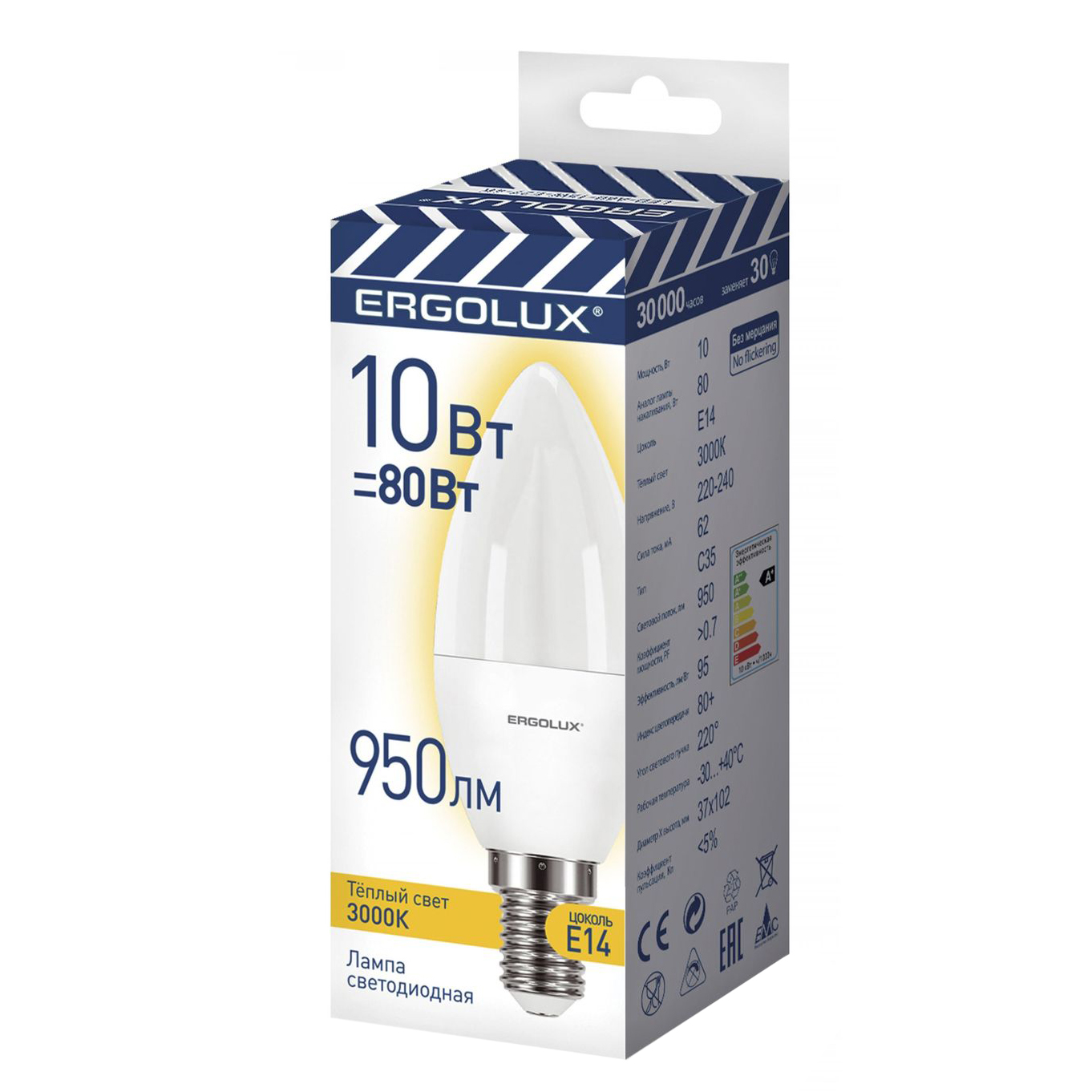 Лампа светодиодная ERGOLUX LED-C35-10W-E14-3000K
