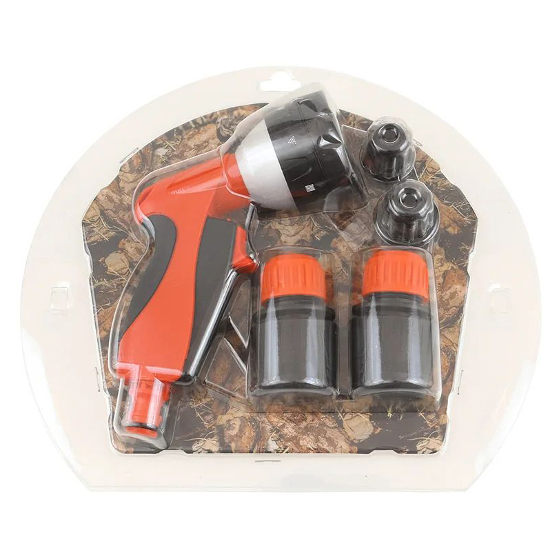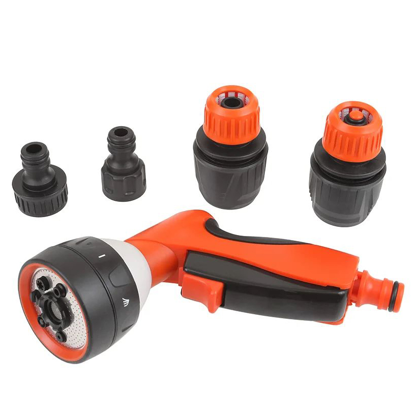Семифункциональный пистолет Эрго имеет 7 видов распыления воды для полива в необходимом режиме. Штуцеры предназначены для подключения шланга к резьбовому водопроводному крану в зависимости от диаметра трубы.