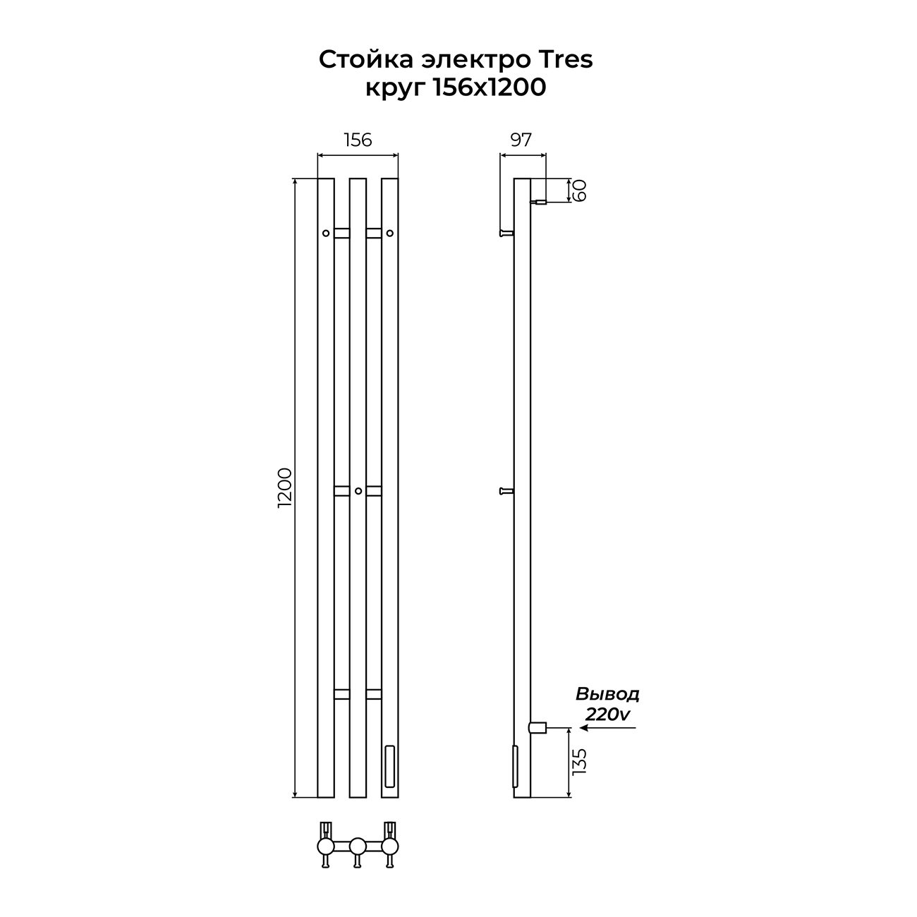 Полотенцесушитель электрический TERMINUS Tres круг под скрытую проводку 156х1200мм хром