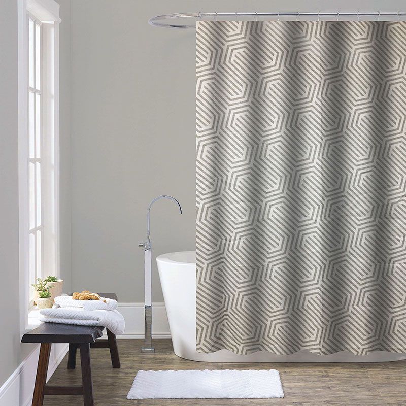 Занавеска для душа из 100% полиэстера с принтом с повторяющимся дизайном, размером 180x200 см. Рекомендации по уходу: деликатная стирка при температуре не более 30 градусов, сушка в естественных условиях, не гладить и не отбеливать. После стирки можно замочить в теплой соленой воде для исключения разводов от порошка.