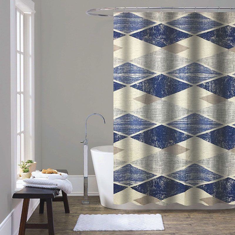 Занавеска для душа из 100% полиэстера с принтом с повторяющимся дизайном, размером 180x200 см. Рекомендации по уходу: деликатная стирка при температуре не более 30 градусов, сушка в естественных условиях, не гладить и не отбеливать. После стирки можно замочить в теплой соленой воде для исключения разводов от порошка.