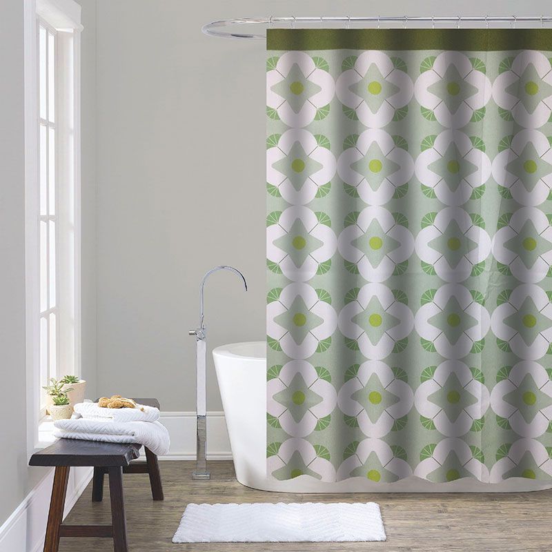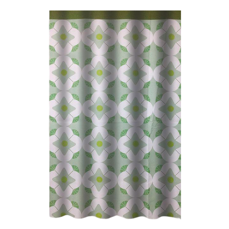 Занавеска для душа из 100% полиэстера с принтом с повторяющимся дизайном, размером 180x200 см. Рекомендации по уходу: деликатная стирка при температуре не более 30 градусов, сушка в естественных условиях, не гладить и не отбеливать. После стирки можно замочить в теплой соленой воде для исключения разводов от порошка.