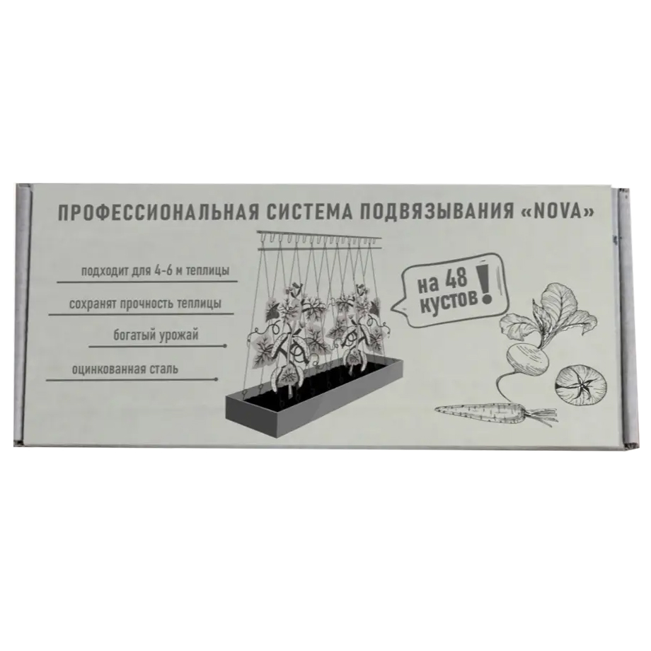 Cистема подвязывания растений предназначена для организованного вертикального выращивания высокорослых культур в теплицах, требующих опоры. Система подходит для теплиц длиной 4-6 метров и рассчитана на обслуживание 48 кустов. Элементы системы изготовлены из оцинкованной стали, что обеспечивает долговечность и защиту от коррозии.