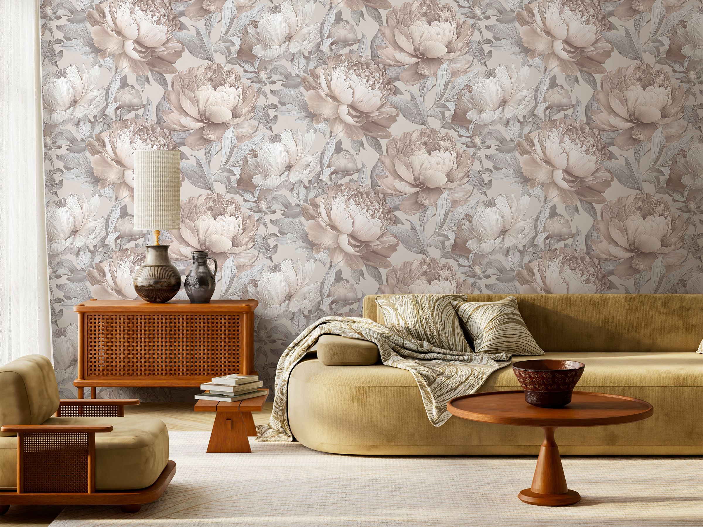 Роскошные пионы раскрываются во всей своей многослойной глубине, словно написанные кистью художника, в коллекции обоев Bohemia от Victoria Stenova. Крупные цветочные мотивы словно оживают на стенах. Мягкие переливы оттенков — от пудрово-розовых и ягодных до приглушённых серо-графитовых и молочно-кремовых — создают эффект живого полотна и наполняют пространство атмосферой спокойствия и внутренней гармонии.