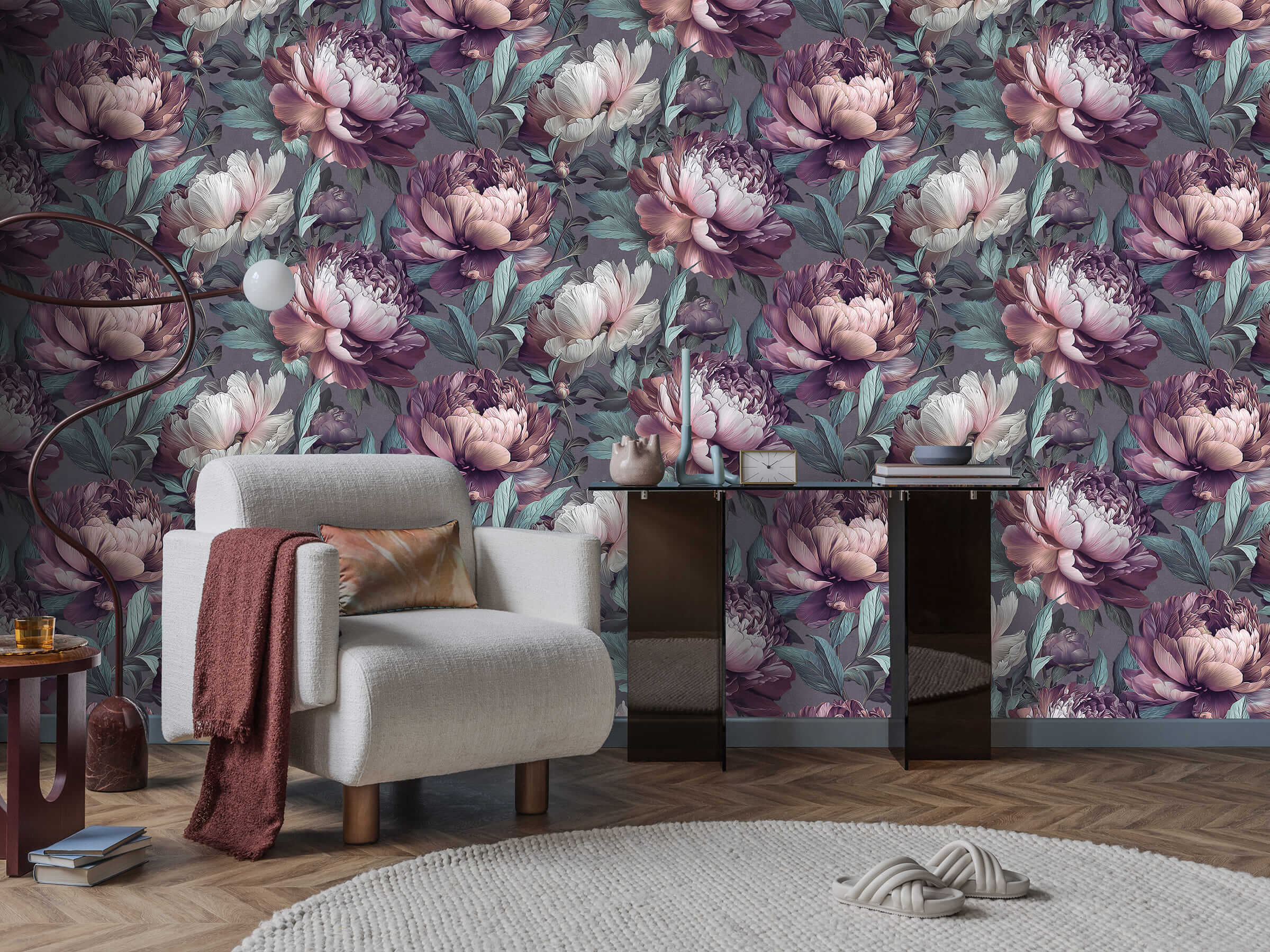 Роскошные пионы раскрываются во всей своей многослойной глубине, словно написанные кистью художника, в коллекции обоев Bohemia от Victoria Stenova. Крупные цветочные мотивы словно оживают на стенах. Мягкие переливы оттенков — от пудрово-розовых и ягодных до приглушённых серо-графитовых и молочно-кремовых — создают эффект живого полотна и наполняют пространство атмосферой спокойствия и внутренней гармонии.