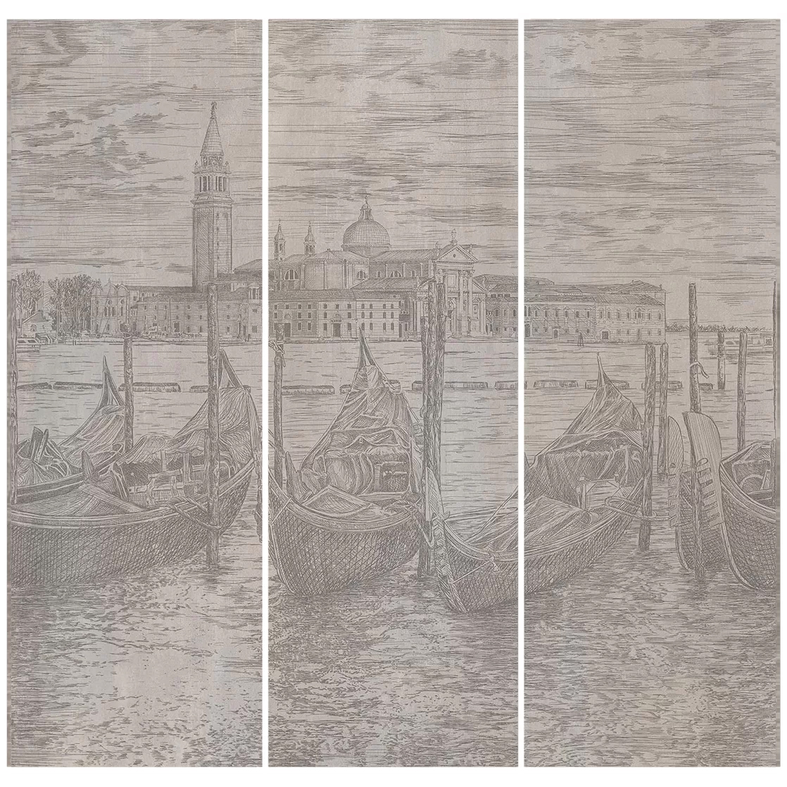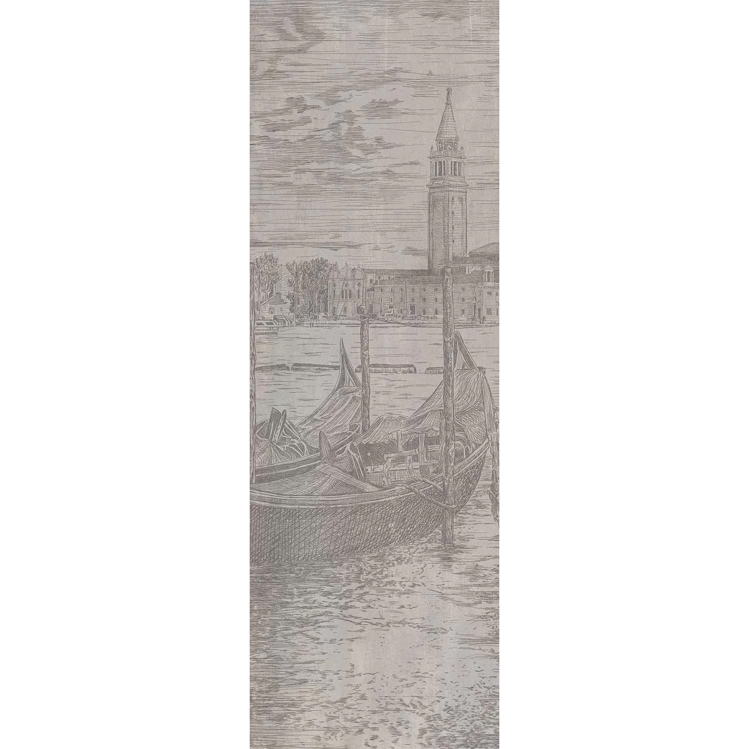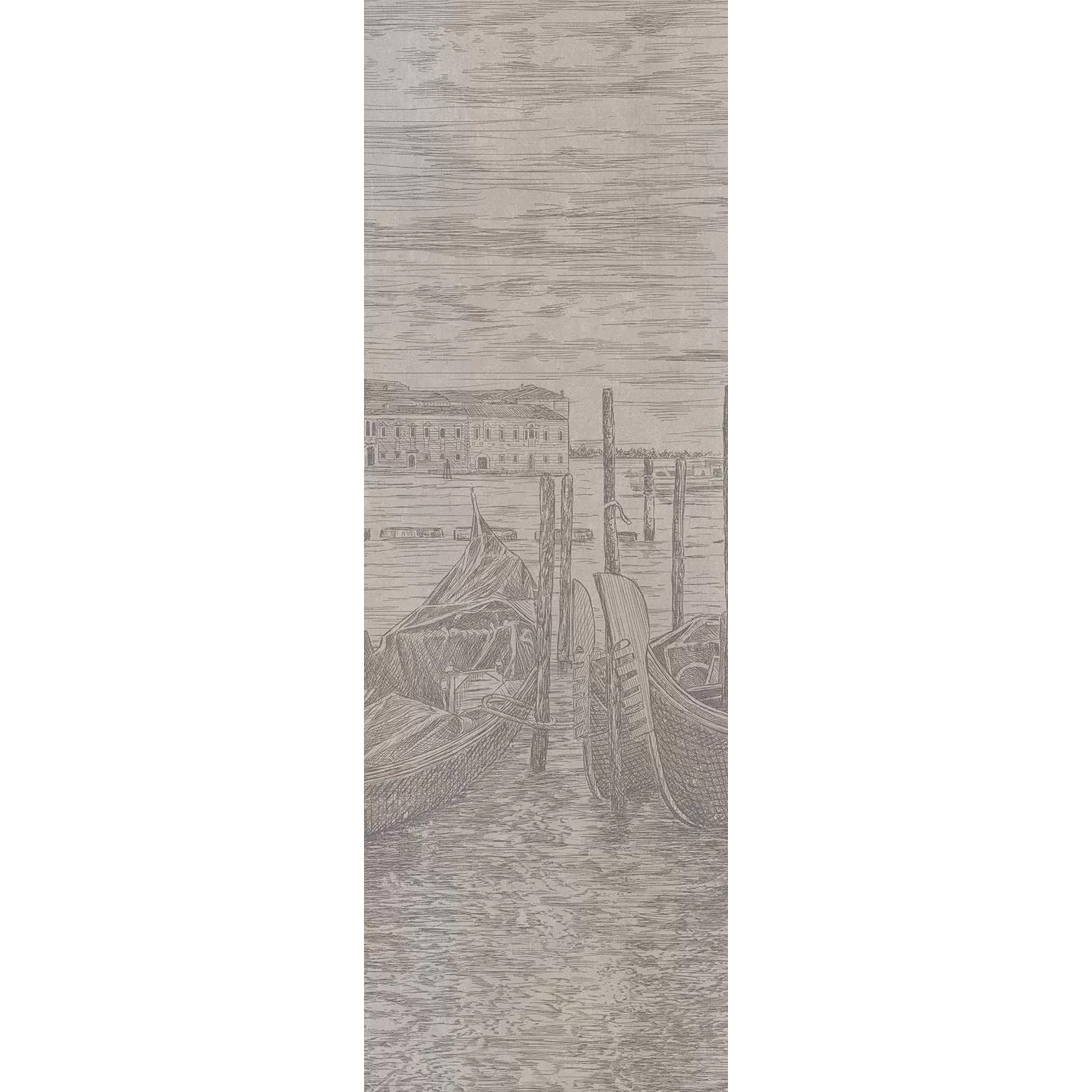 Также керамическую композицию обогатит панно с венецианским сюжетом, техника исполнения которого напоминает гравюру. Ведь филигранная работа с металлом — одно из тех ремёсел, которые веками развивались в Венеции, и плитка достоверно передаёт красоту гравировки.