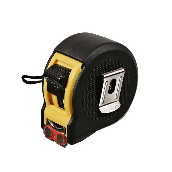 Для наилучшего комфорта зацеп имеет миниатюрный двойной магнит, с силой прижатия способной выдержать 800г, благодаря которому обеспечивается его надежная фиксация к металлосодержащим поверхностям, что помогает выполнить замеры в одиночку, либо соединить вместе две рулетки для измерения увеличенной до 16 метров длинны с одной стоянки без перехода.