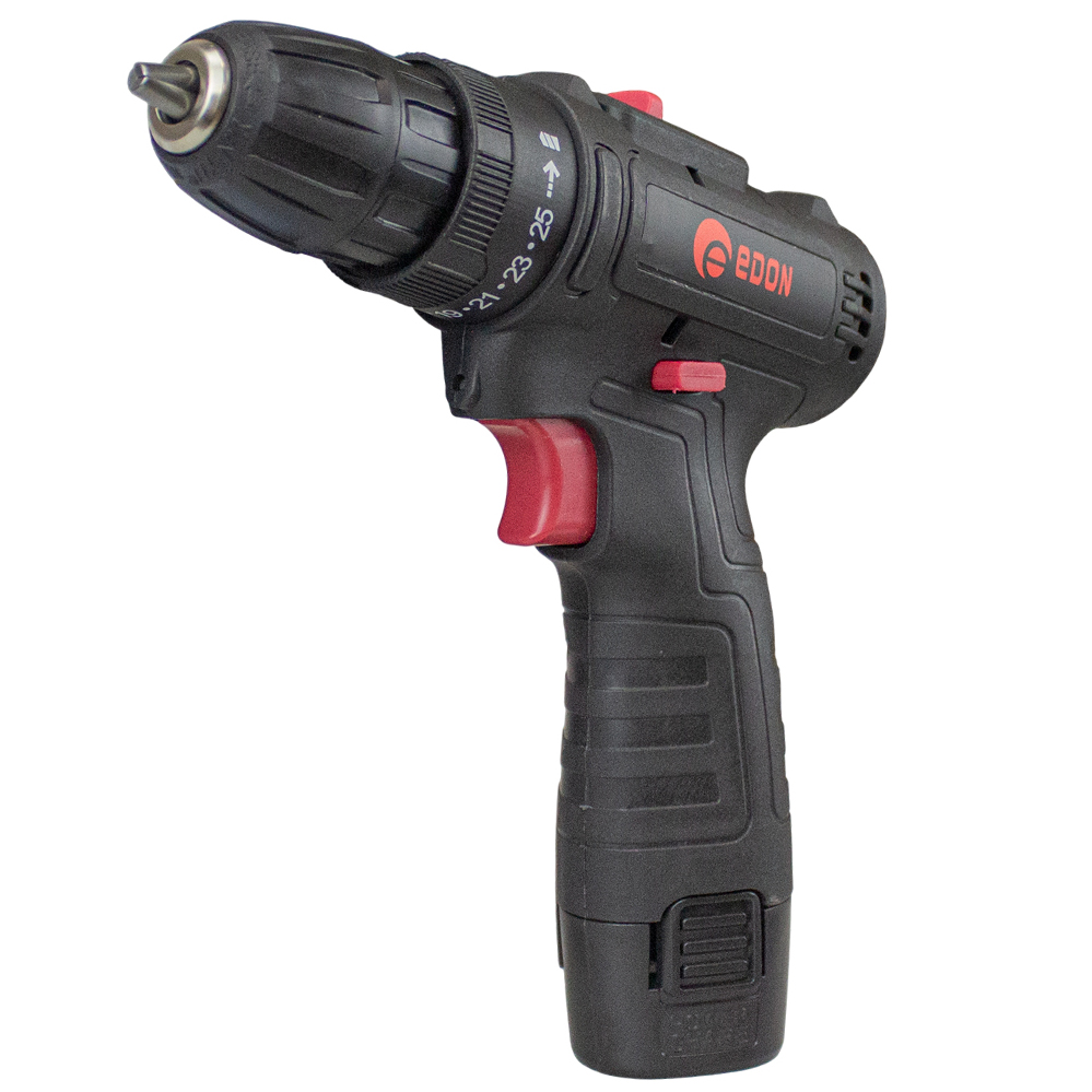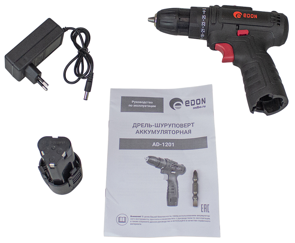 Дрель-шуруповерт аккумуляторная безударная Edon AD-1201 предназначена для закручивания, отворачивания винтов и шурупов, сверления отверстий в различных конструкционных материалах (в том числе металле, дереве, пластмассе и т.п.).