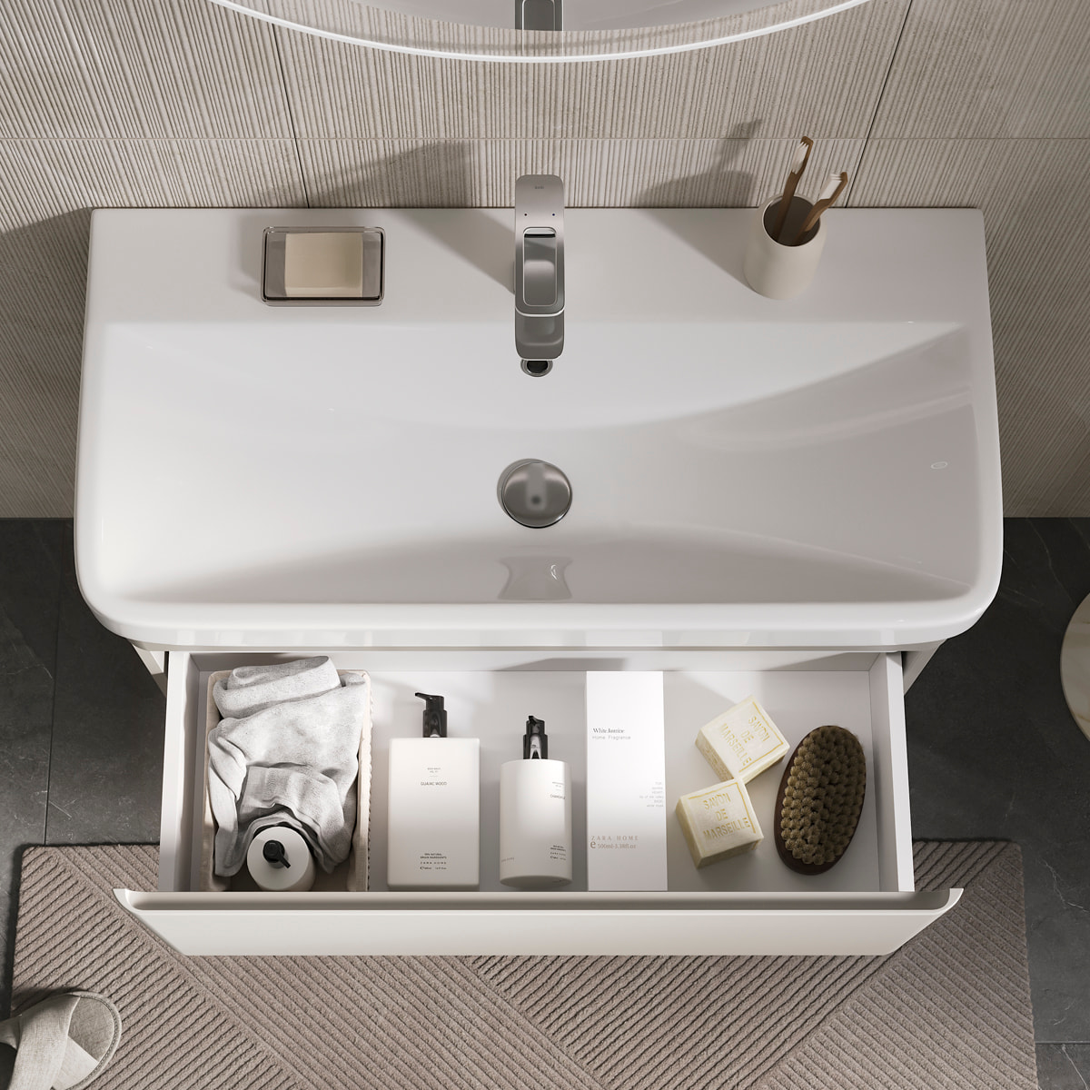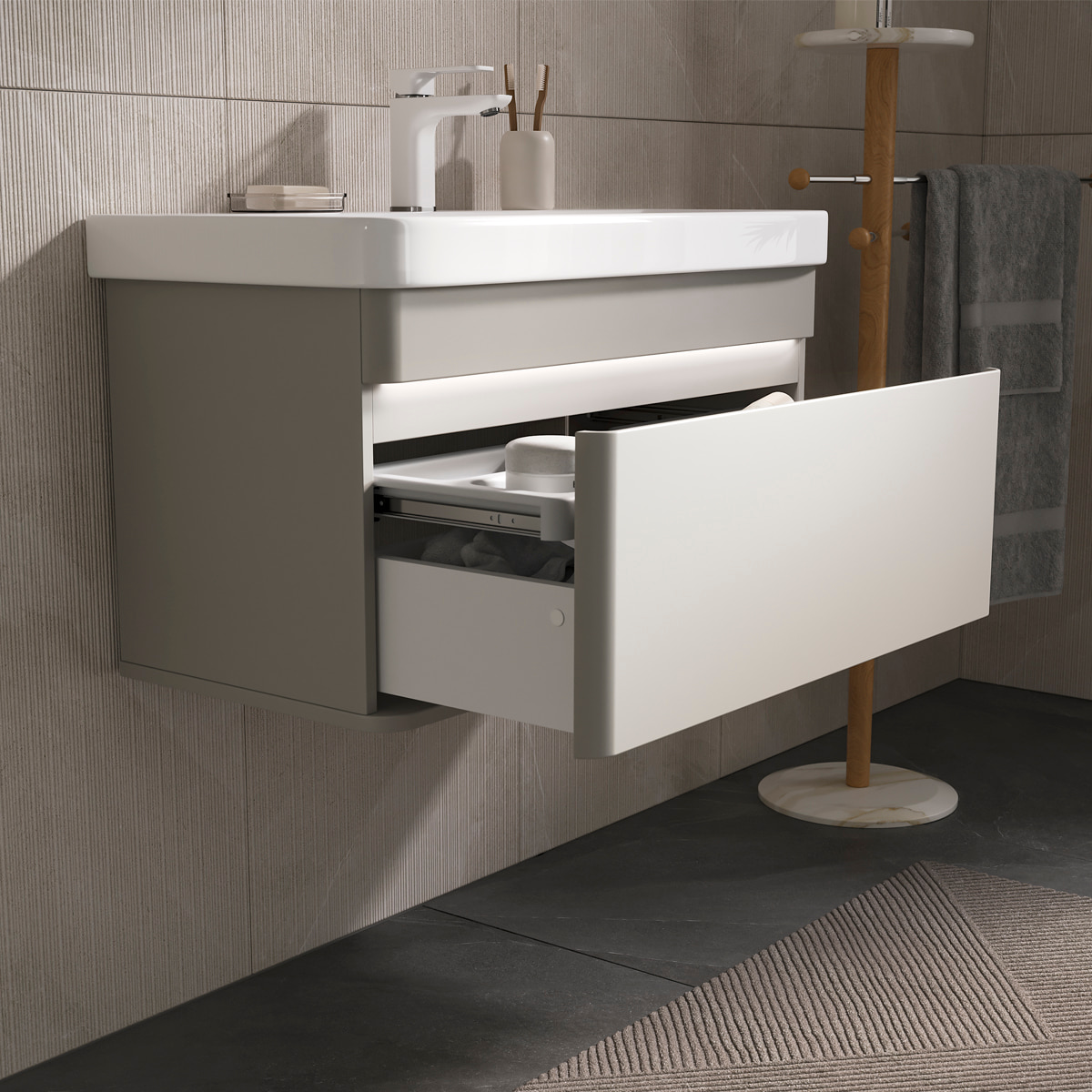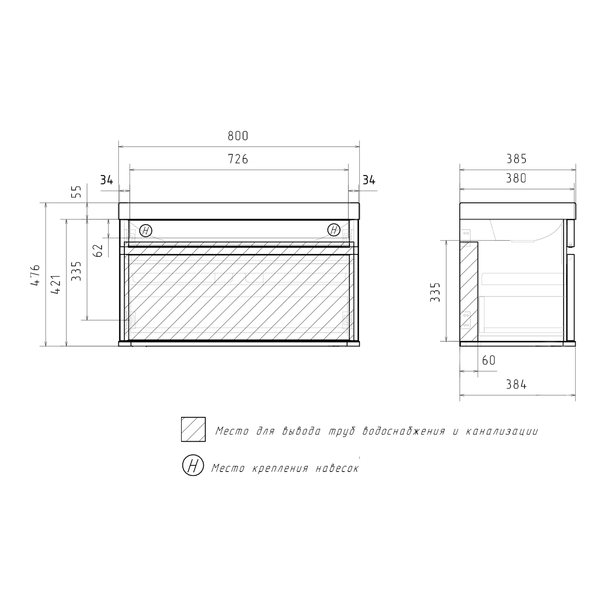 Комплектуется раковиной Nice 80, поставляется в комплекте с сифоном. Может быть установлена как в подвесном варианте, так и на ножки из массива березы (приобретаются отдельно).