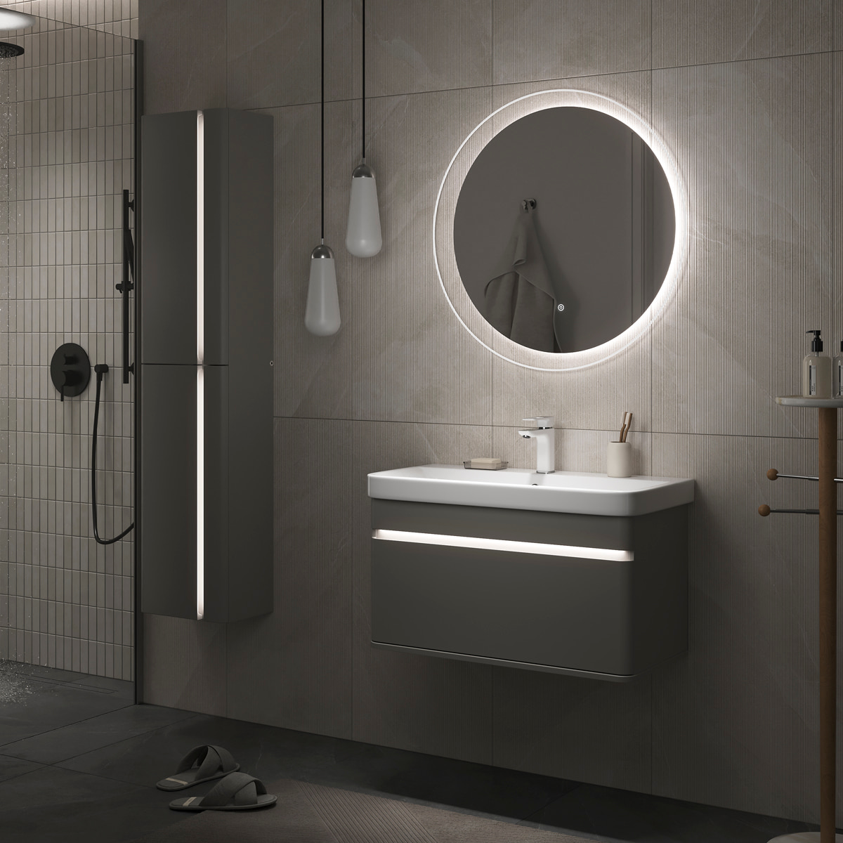 В царгу тумбы интегрирована декоративная LED-подсветка с нейтральной цветовой температурой. Управление подсветкой происходит при помощи датчика движения, расположенного на дне тумбы.