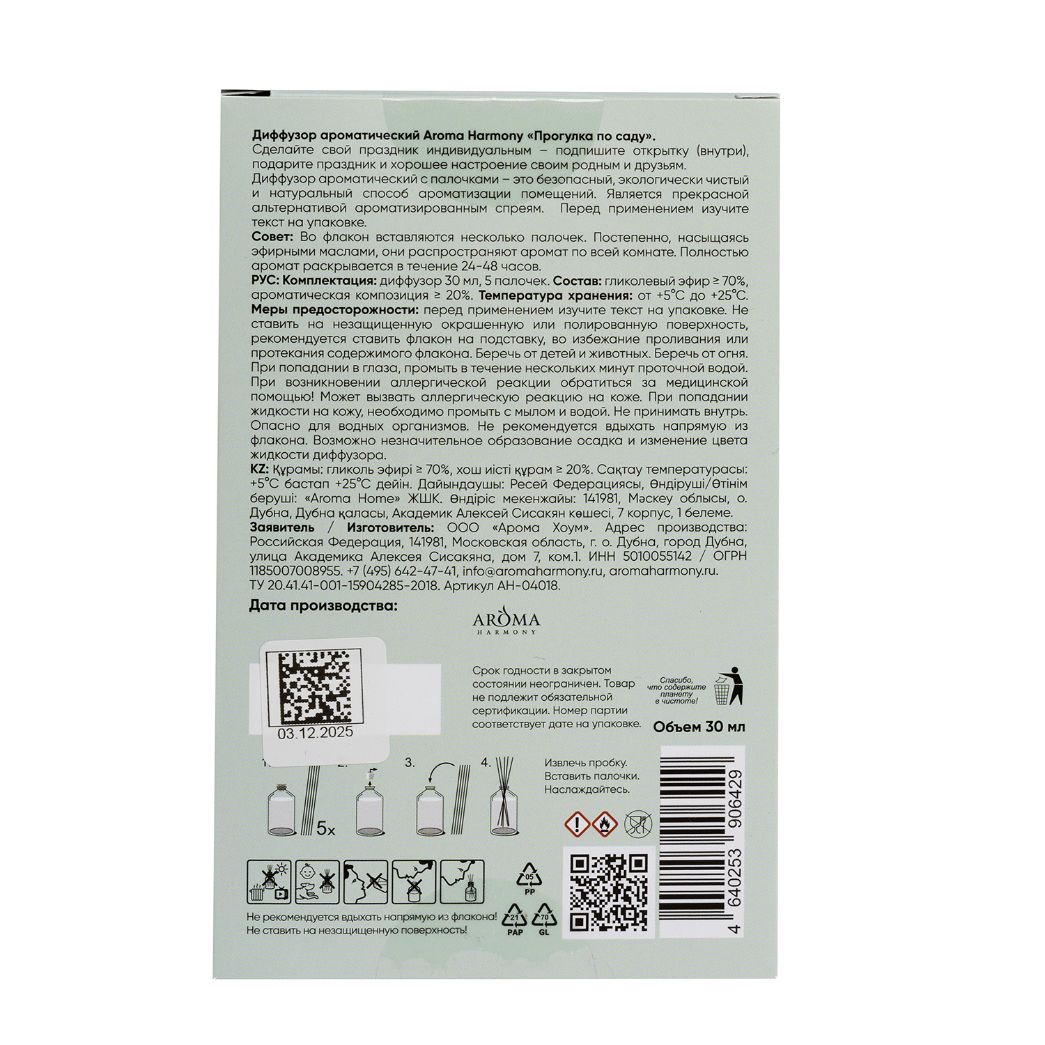 Диффузор-открытка AROMA HARMONY Прогулка по саду 30мл