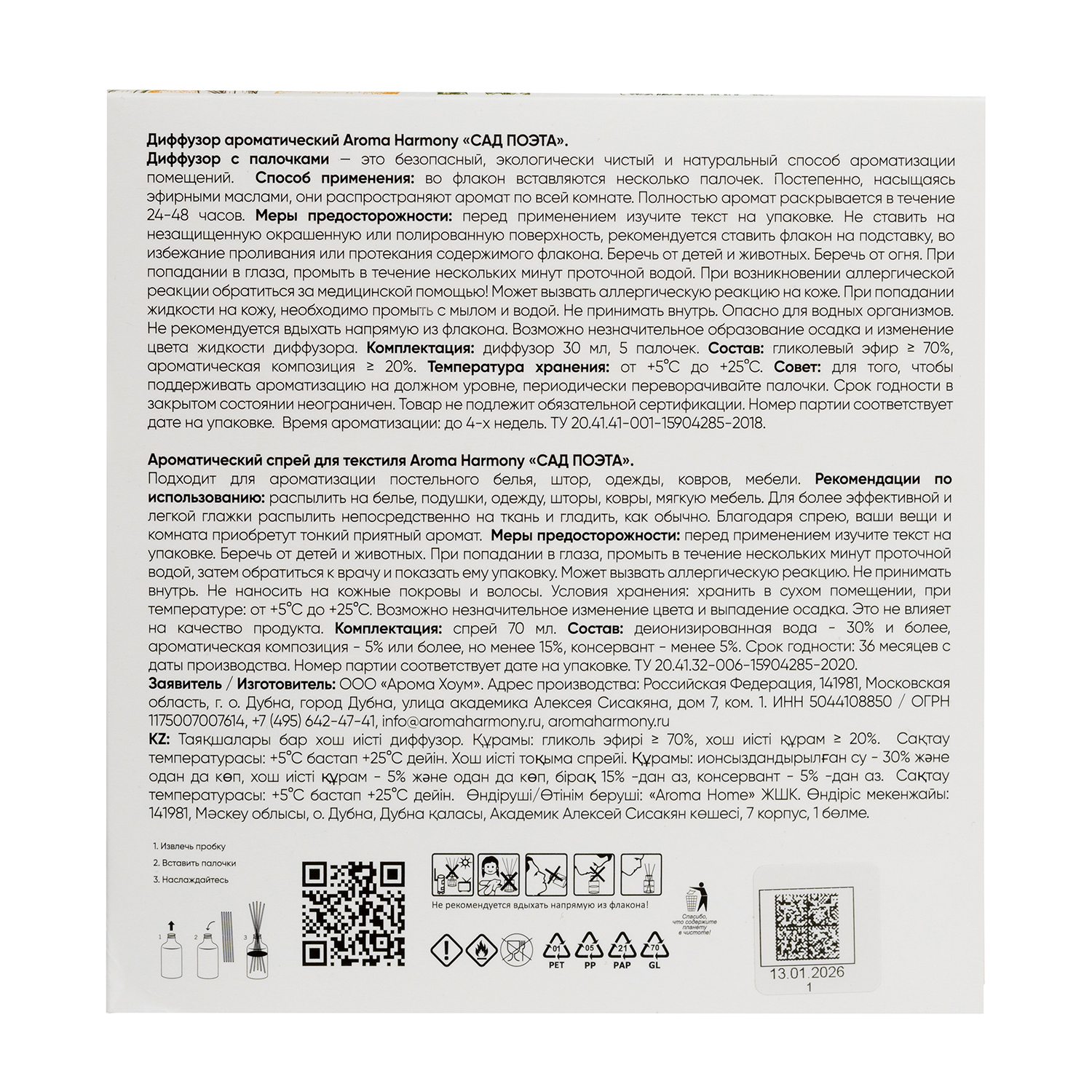 Набор ароматический AROMA HARMONY Сад поэта диффузор+спрей для текстиля