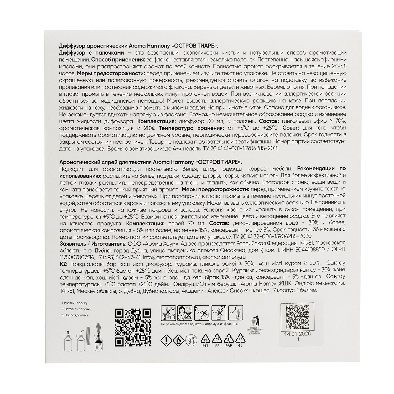 Набор ароматический AROMA HARMONY Остров Тиаре диффузор+спрей для текстиля