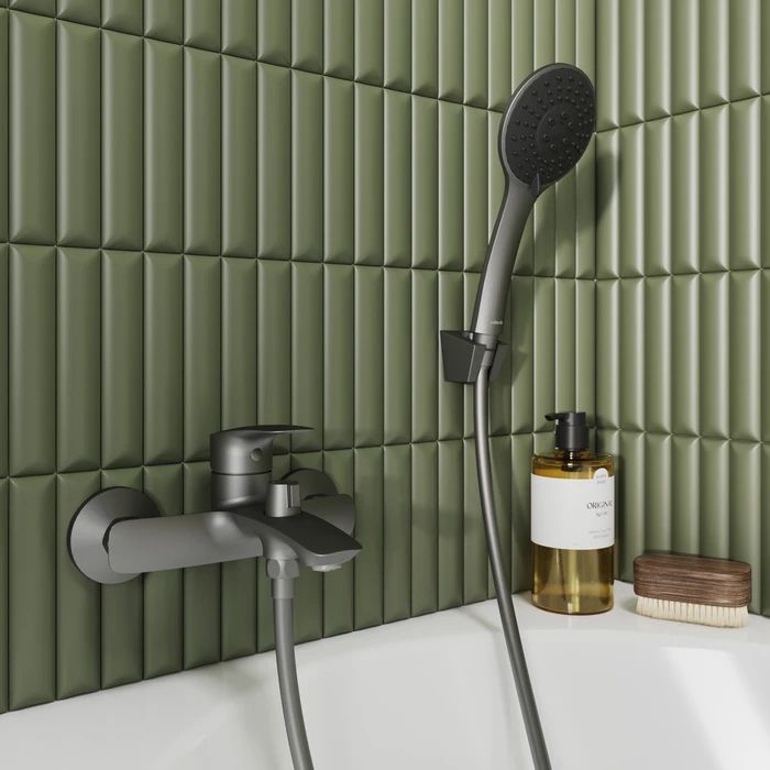 Смеситель для ванны Рора (Rora) отличается универсальным характером: основной акцент в его дизайне приходится на плавные линии корпуса и трендовый графитовый цвет. Модель с коротким фиксированным изливом комфортна в ежедневном использовании, а интенсивность и температура потока воды легко регулируются удобной ручкой смесителя. Поворотный дивертор работает при любом давлении воды, переключая поток воды на большую душевую лейку (100 мм) или в комбинированном режиме.